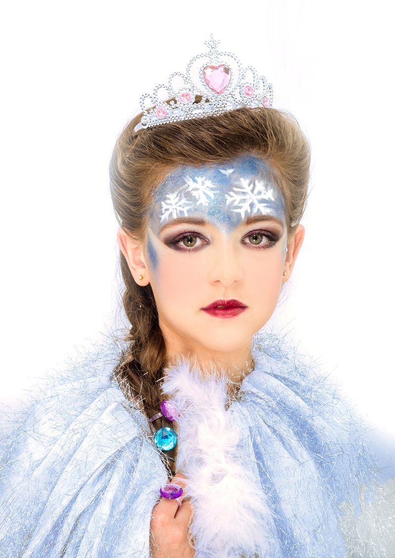 ניתן לשבץ אבנים קטנות ונוצצות על פתיתי השלג בכדי להעצים את מוטיב הקרח הקפוא. יש למשוח את השפתיים בגוון בורדו תוך שמירה על מראה צר של השפה העליונה בהתאם לדמותה המונפשת של אלזה. ולסיום יש להדגיש בסומק וררדרד במרכז הלחי את תפוחי הלחיים.