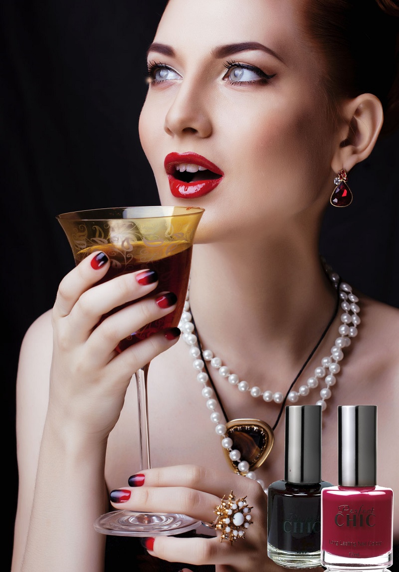 CHIC - האישה של שיק חוגגת את הלילה במסיבה נוצצת שהיא מרכזה. את ציפורניה מקשטים שני צבעים מנוגדים אשר כל צבע משתלט על חציה של הציפורן.