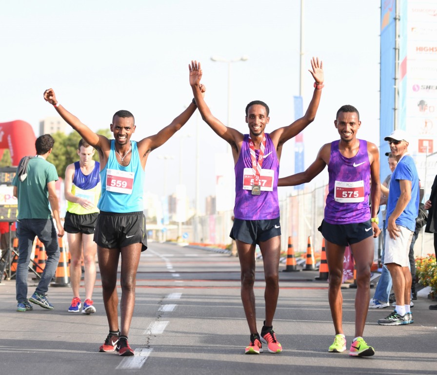 מקומות ראשונים בחצי מרתון: איימרו עלמיה אלוף ישראל לריצות קצרות עצר את השעון על 1.08.16 וסבטלנה אולייניק עם זמן של 1.25.51