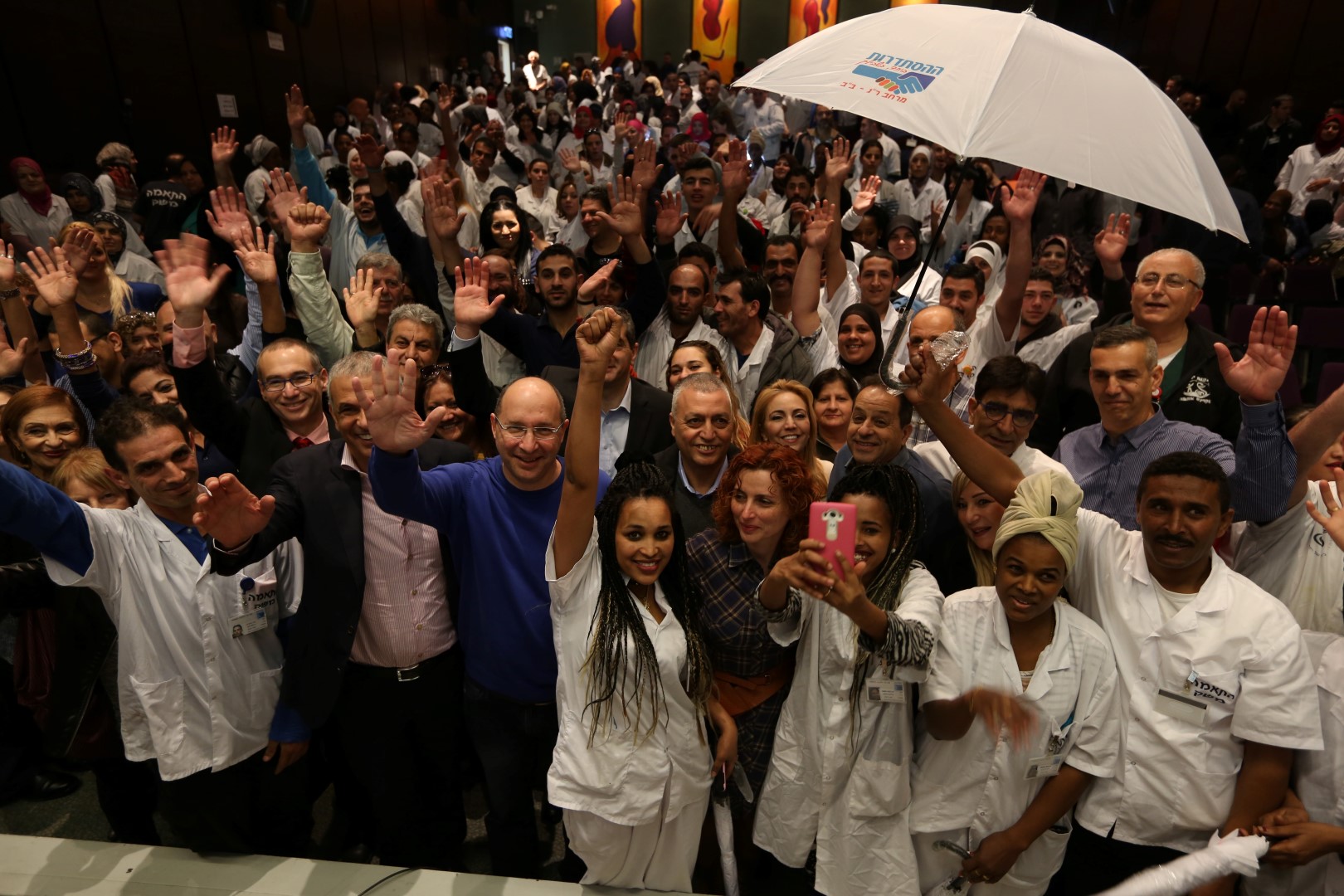 "זהו הסכם היסטורי כי זו הפעם הראשונה אחרי הרבה מאוד שנים שמחזירים את הכבוד לעובדים, מפסיקים לראות אותם כשקופים ומביטים להם בעיניים", כך אמר הבוקר (ב') יו"ר ההסתדרות אבי ניסנקורן, בטקס שנערך במרכז הרפואי שיבא בתל-השומר, שבמסגרתו למעלה מ-500 עובדי קבלן המועסקים בתחום הניקיון בבית חולים הועברו להעסקה ישירה ונקלטו לשירות המדינה.