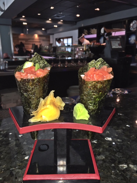 לאחר שהתחממתי מהמרק, הגיע שלב המתאבנים.קונוס סלומון ואבוקדו מושלם, שלכאורה היה נראה מאוד שיגרתי, אך הכיל כמות סלומון נדיבה, חתיכות אבוקדו ואורז נהדר. כל אלו היו עטופים באצה קריספית דקיקה, שמתפצחת בפה וגורמת לעונג רב. כל אלו בשילוב של סויה בהכנה ביתית, במרקם מושלם ולא מלוח, גרמו לקונוס הזה להיות פשוט מדויק!