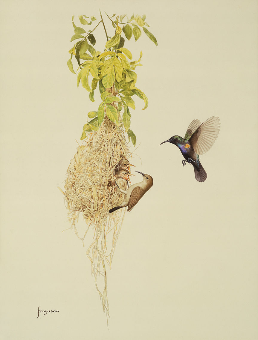 פרגסון נולד בניו יורק ועלה לארץ בשנת 1965. הוא שילב בעבודתו שני תחומים אותם אהב וטיפח: אומנות ומדע. במשך כ-30 שנה היה מאייר מדעי במחלקה לזואולוגיה באוניברסיטת תל אביב, עבודתו התבססה על לימוד קפדני של בעלי החיים, תוך התבוננות בטבע, בתמונות ובפוחלצים שסיפקו לו הזדמנות להבחין בפרטים הקטנים ולצור תיאור מדויק של האובייקט שבחר לצייר. נוסף על אהבתו לבעלי חיים התעניין מאוד בפרהיסטוריה ובחקר התנהגות האדם הקדמון, הוא אף פרסם מספר מאמרים בעיתונות מדעית על אף שלא היתה לו הכשרה פורמאלית בנושא. בתערוכה הוקדש פרק גם לתחום זה.