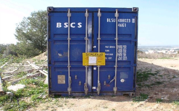 בעקבות איתור הפלישה אל אדמות המדינה מפקחי רשות מקרקעי ישראל תלו על המכולה התראה המורה למסיג הגבול לפנות את הקרקע.