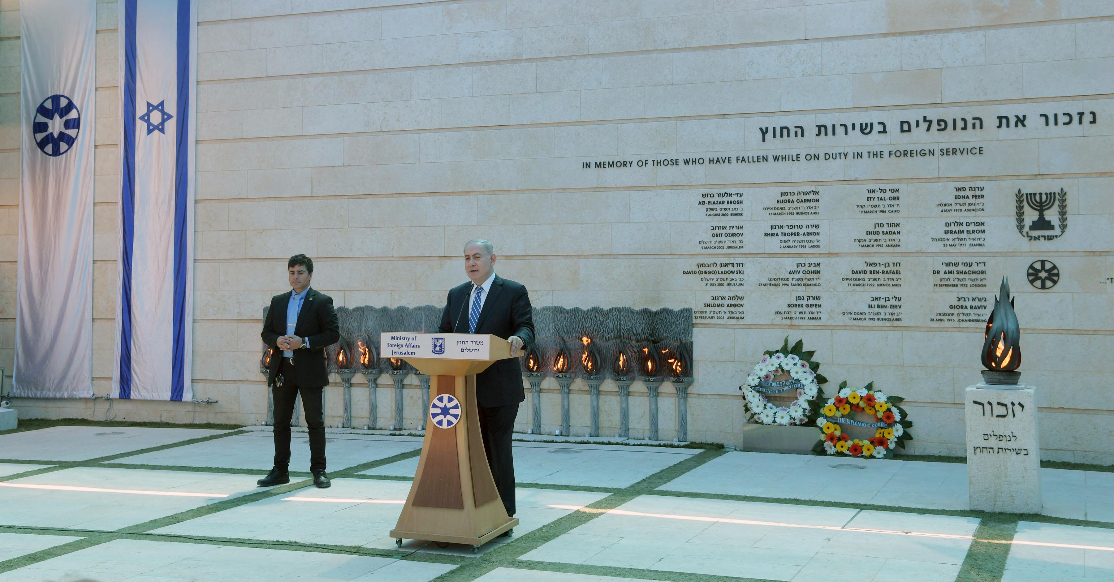 יקירינו, נופלי שירות החוץ הם אינם איתנו, אבל הם בהחלט חלק מהעשייה הדיפלומטית העולמית שלנו ופועלם נושא פירות גם בהיעדרם. שאיפתם לראות את ישראל צועדת קדימה ועולה מעלה-מעלה מתגשמת ומתמלאת. אני יודע שעבורכם, בני המשפחות, כאב האובדן הוא אינסופי וצריך לחיות עם זה עד יומכם האחרון. והפצע בנשמה נותר כשהיה. כולנו משתתפים עמכם במשא היגון. משפחת משרד החוץ לדורותיה מאמצת אתכם אל לבה והעם כולו מושיט לכם יד מנחמת. נזכור את הנופלים ונמלא אחר מבוקשם – להבטיח את עתידה, ביטחונה, שלומה ושגשוגה של מדינתנו האהובה.