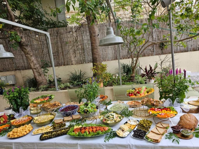| שולחן שוק ישראלי | אירוע לאומי | מנות מסורתיות כמו חומוס, פלאפל, סלטים |