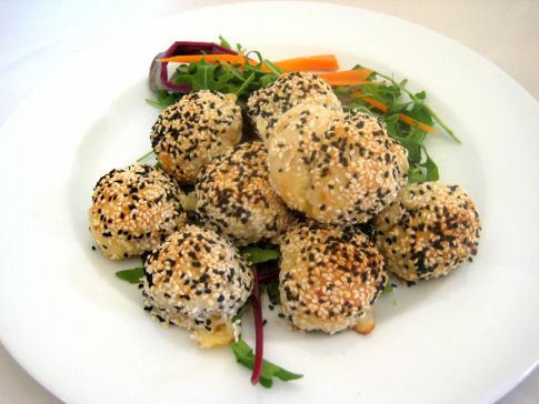 אופן הכנת המאפים: לרדד את הבצק בעזרת מערוך, עד קבלת עלה בעובי סנטימטר, לקרוץ עיגולים בעזרת כוס הפוכה. לשים כפית גדושה מתערובת המילוי במרכז צורת הבצק. לגלגל את הבצק כך שיעטוף לגמרי את המילוי. לזרות שומשום על המאפה, ולאפות ב-180 מעולת כ-20 דק' עד להשחמה.