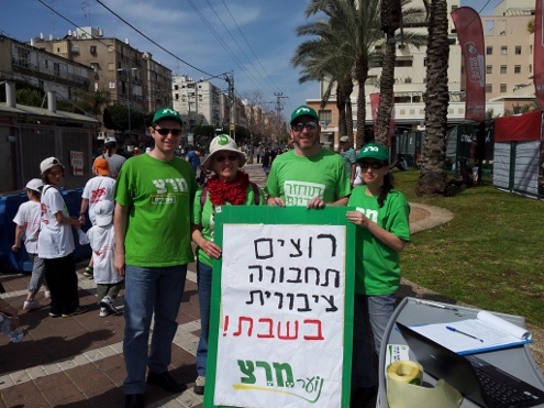 פעילי המפלגה מכפר סבא ומהוד השרון הגיעו למרוץ כפר סבא, החתימו את המשתתפים על עצומה למען תחבורה ציבורית בשבת והדגישו את חשיבות השמירה על האופי החופשי של יום המנוחה