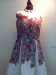 נוי מונוס, תלמידת כיתה יב', תל אביב. - "הדאדא בהשוואה לימינו" בשמלה נעשה שימוש בטכניקת האוטומיזם, טכניקה בה השתמשו הדאדא. נוי השתמשה במטבעות מארצות שונות כתבליט והעבירה אותם לנייר ומזה יצרה דפוס שהועבר לבד בסובלימציה.