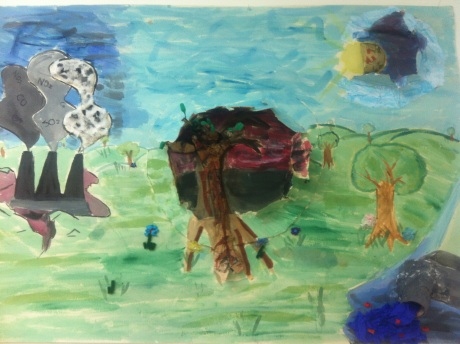 ריטה קרסנופבצב, תלמידת כיתה יוד, הציגה יצירה בשם "המהפך", המתארת אנשים רזים שולטים באנשים שמנים.