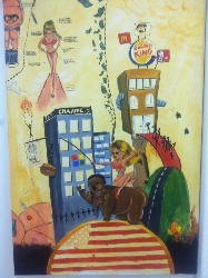 מישל טרינניס הציג ציור תחת הכותרת "איכות הסביבה", המשלב עבודה בעיסת נייר.