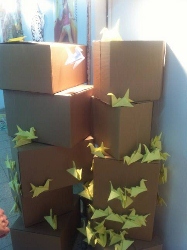 התלמיד אופק ניסנבאום הציג עבודה בשם "להיות שונה בחברה", המורכבת מציפורים המקופלות באורגמי מדפי מחברת צהובה. ציפור אחת עשויה מדף מחברת לבן בו כתוב טקסט אישי ומאפשר לצופה הצצה קטנה בכיתוב.