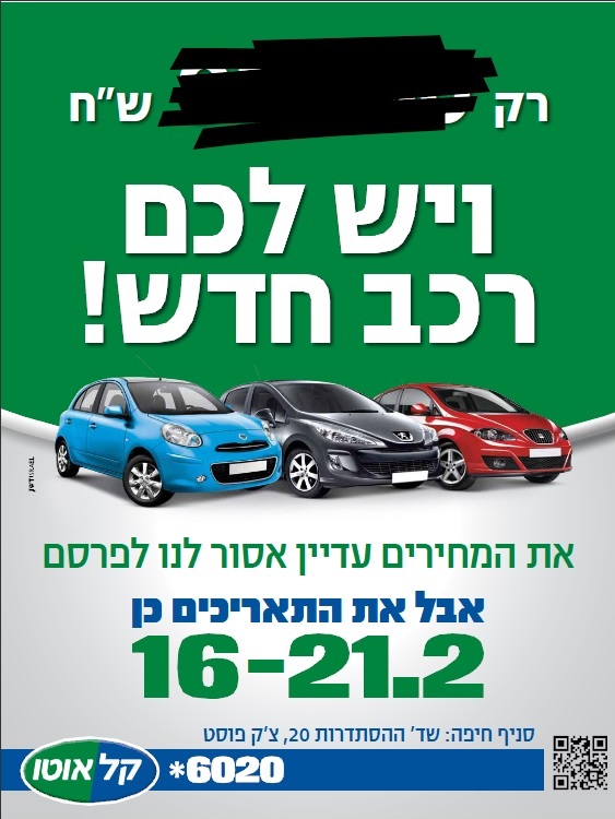 תחת הסלוגן "במחירים שאסור לפרסם", ביום ראשון 16.2, קבוצת הרכב קל אוטו, פותחת בסניף קל אוטו בשדרות ההסתדרות 20, צ'ק פוסט בחיפה, יריד מכירות חגיגי לתושבי חיפה בלבד. במסגרת היריד שימשך כשבוע עד ליום ו' ה-21.2, הרוכשים יוכלו להנות מהטבות משמעותיות ברכישת רכבים חדשים (0 קילומטר עם ניילון) מקל אוטו.