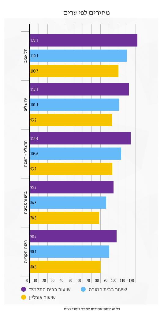 תל אביב היא שיאנית המחירים מבין הערים בארץ. שיעור פרטי בבית התלמיד בתל אביב עולה 122.1 ש"ח בממוצע. לשם השוואה, על אותו שיעור בבאר שבע תצטרכו לשלם 95.2 ש"ח בממוצע, הבדל של כמעט 30%!