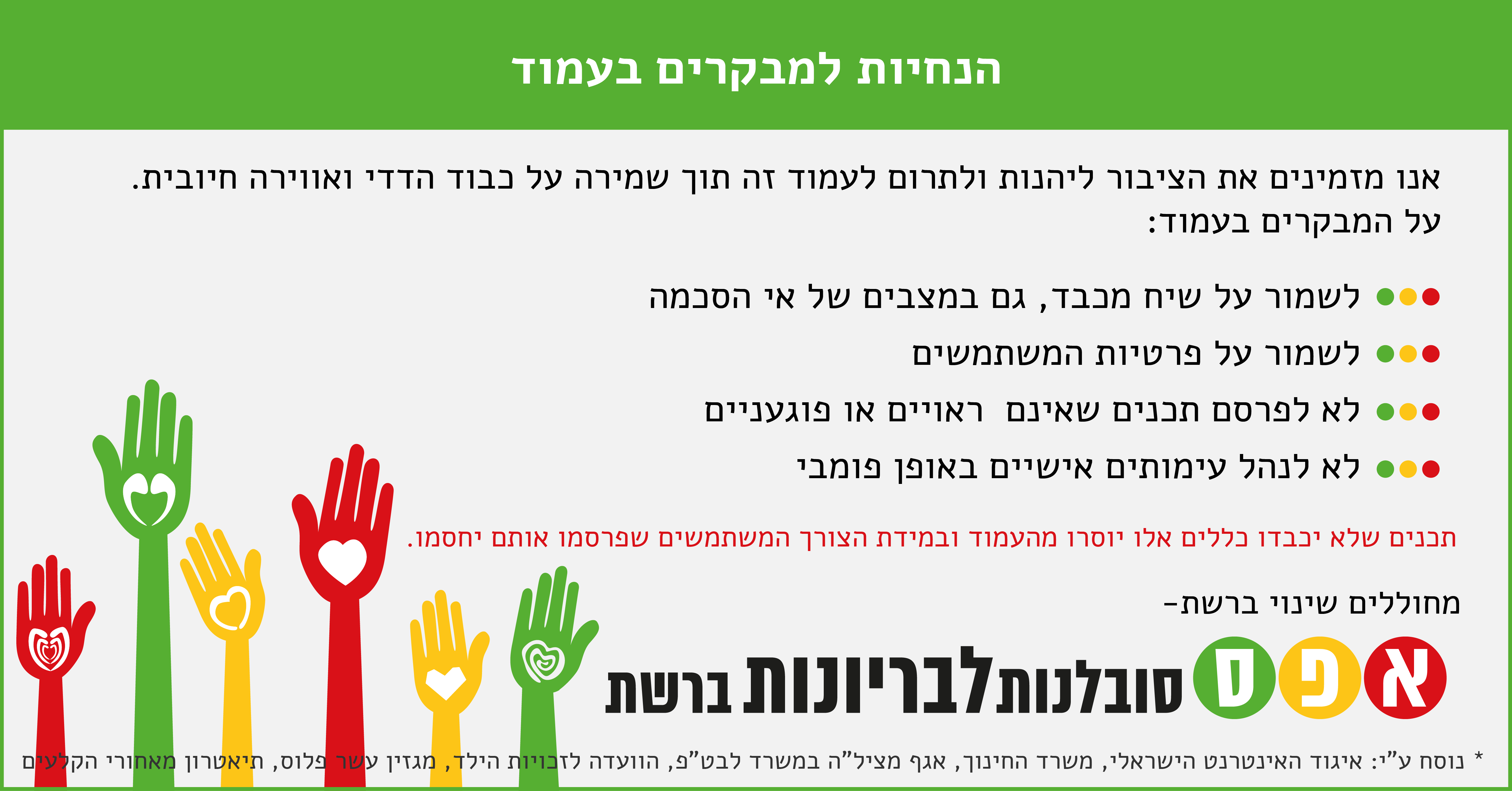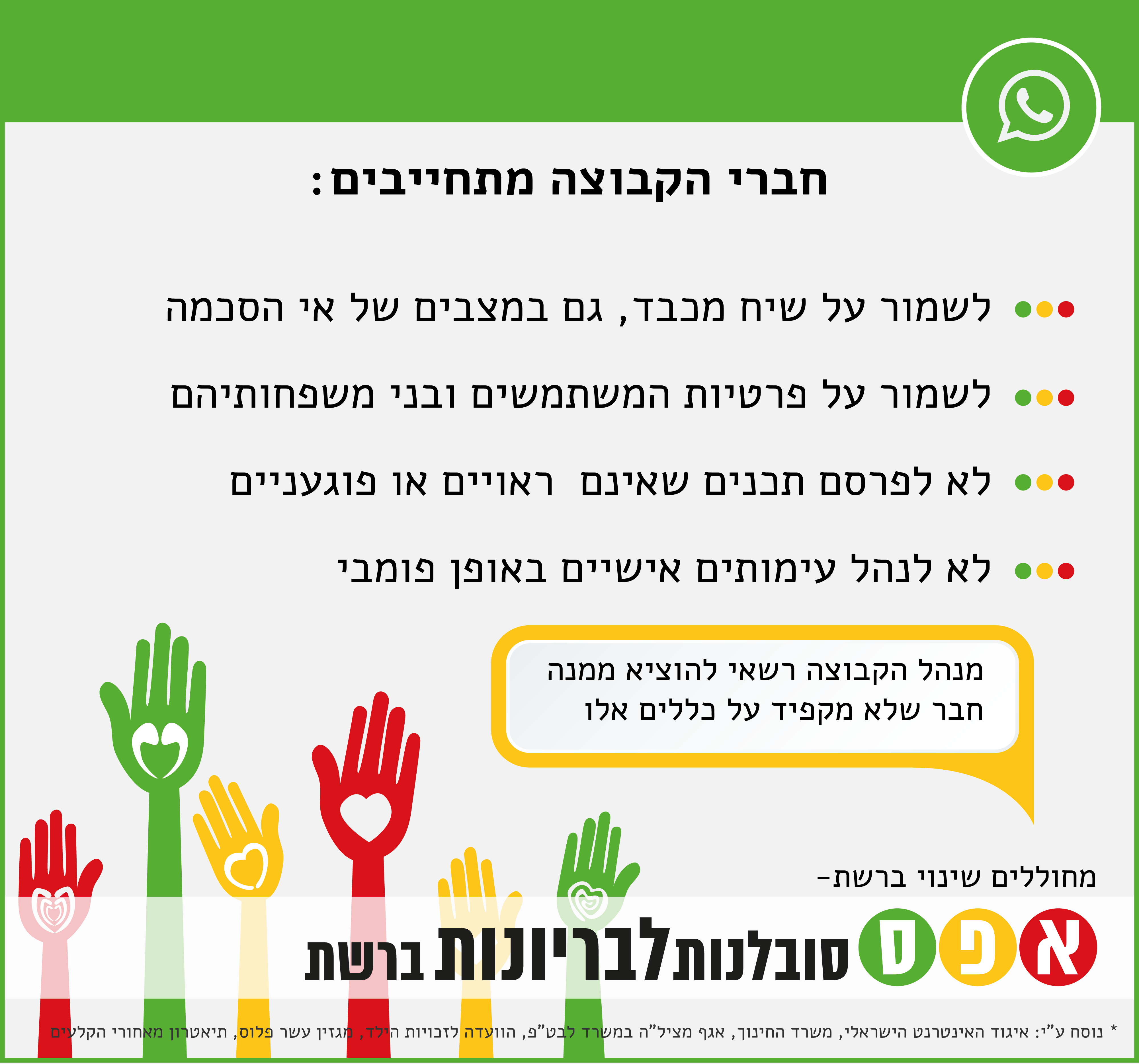 מדובר במסר הכולל ארבעה כללים קצרים המעודדים את חברי הקבוצות והעוקבים לנהל שיח מכבד ולהיאבק בבריונות ברשת. מנהלי קבוצת וואטסאפ או מנהלי עמוד פייסבוק מתבקשים להפיץ בקרב חברי הקבוצה או העוקבים את המסר, ולקרוא להם לקבל אותם על עצמם ואף להפיצם לאחרים באופן חופשי. בנוסף, בהנחיות מצוין במפורש כי מנהל הקבוצה או העמוד רשאי לנקוט בסנקציה של הוצאה מהקבוצה לגבי מי שיפר את הכללים.