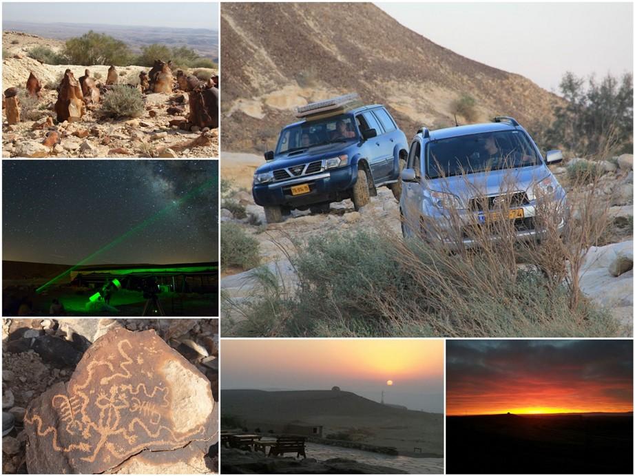 הטיול יחל בהתכנסות על מצוק מכתש רמון בסעודת מטעמי המדבר וטעימות יקבי הר הנגב בזמן שקיעה שיכין סער בדש, השף המקומי ומבעלי מסעדת 'הדסער' וימשיך אל סיור לילי במדבר, להיכרות עם כיפת השמיים ותצפיות בטלסקופים משוכללים.