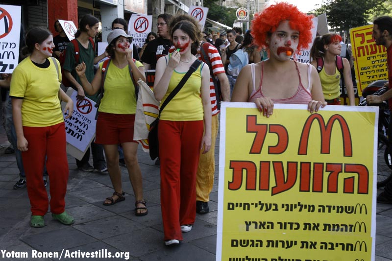אורן בן יוסף ממארגני המחאה השנה מסר כי" "השליטה הגלובלית של מקדונלדס, באופי הצרכני שלנו, בחייהם של חקלאים במדינות עניות, בפגיעה האקולוגית החמורה ובחייהם של מיליונים על גבי מיליונים של בעלי חיים אומללים, השליטה הזו חייבת להיפסק. כמו בכל שנה, גם השנה אנחנו נעמוד מול מה שהפך כבר להיות סמל להתפשטות חסרת מעצורים על חשבונם של אחרים"