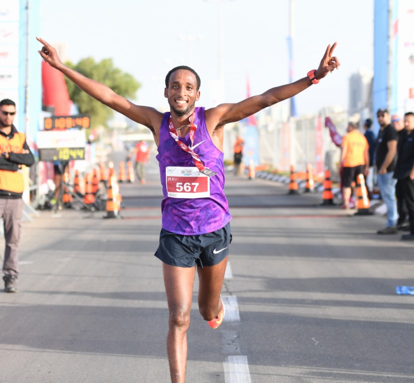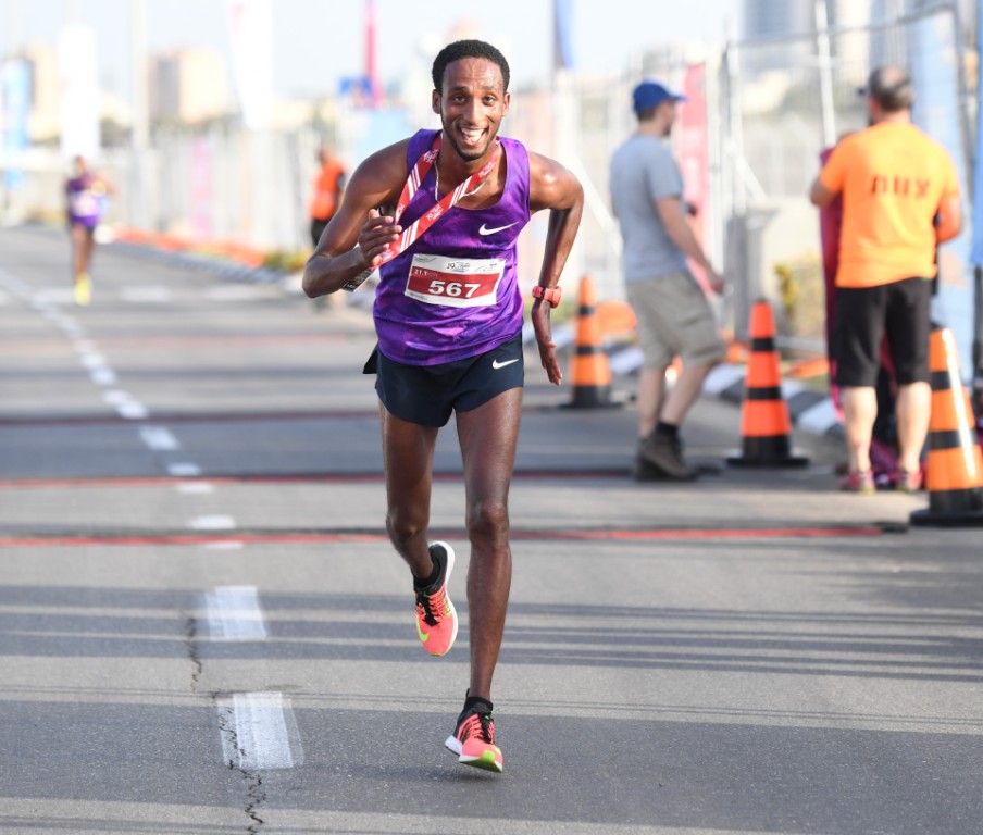 מקומות ראשונים בחצי מרתון: איימרו עלמיה אלוף ישראל לריצות קצרות עצר את השעון על 1.08.16 וסבטלנה אולייניק עם זמן של 1.25.51