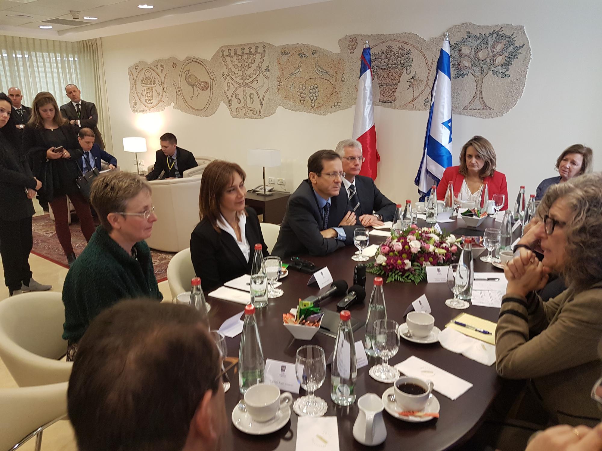ראש האופוזיציה ויו"ר המחנה הציוני, יצחק (בוז'י) הרצוג, נפגש הבוקר בירושלים עם נשיא הסנאט הצרפתי, ז'ראר לארשה, בעת ביקורו הרשמי הראשון בישראל מזה מספר שנים ועם משלחת חברי הסאנט בראשותו. לפגישה הוזמנה על ידי ראש האופוזיציה, לאה גולדין, אמו של סגן הדר גולדין ז"ל, שנהרג ברצועת עזה בעת מבצע צוק איתן וגופתו מוחזקת בשבי החמאס.