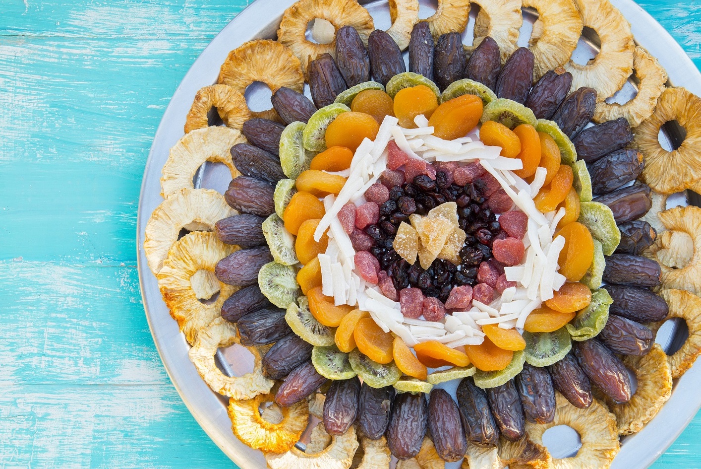 מגשי פירות יבשים ססגוניים לאירוח, כמתנה או סתם לנשנוש.
