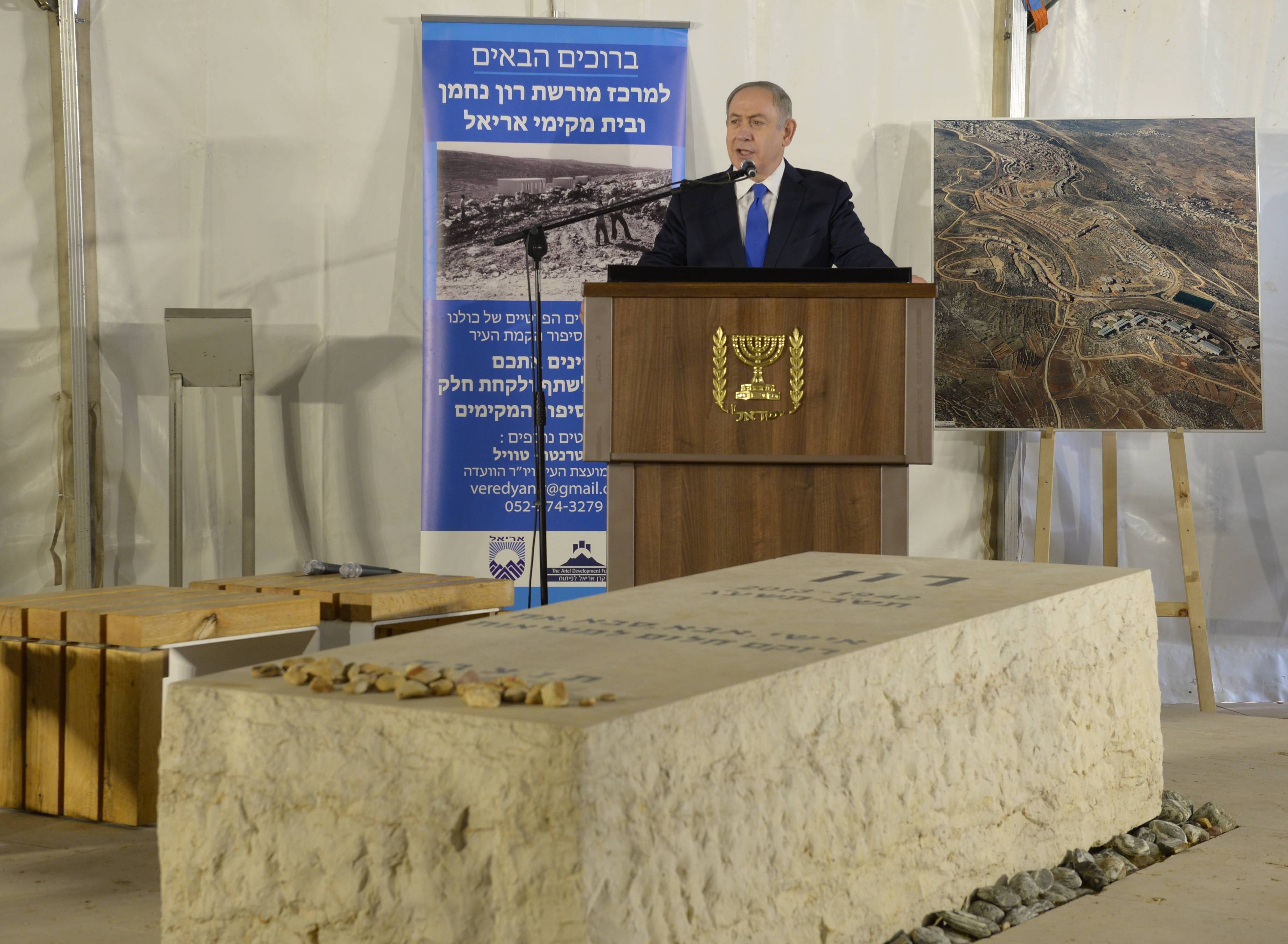 כבר ארבע שנים שרון לא איתנו, אבל העיר אריאל, מוקד חייו, בנויה לתלפיות, מתפתחת, משגשגת. יש פה כיום, אלי, עשרים אלף תושבים, ואני מבטיח לכם: עוד יהיו הרבה יותר. רק לאחרונה הממשלה בראשותי אישרה עוד כאלף יחידות דיור, פירוש הדבר חמשת אלפים איש, פירוש הדבר גידול משמעותי. אין שום מצב שאריאל לא תהיה חלק ממדינת ישראל. תמיד היא תהיה חלק ממדינת ישראל.