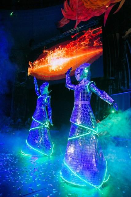 במיוחד למופע פורים נוחתת לראשונה בישראל, קבוצת אומני קרקס ידועה מרוסיה הנקראת reflection the mirror show, המביאה עמה, במיוחד למופע, תלבושות יוצאות דופן בדמות חייזרים. התלבושות עשויות כולן חתיכות מראה, נורות לד ולייזר, המשלבים טכנולוגיה חדשנית ומתקדמת. במהלך המופע אומני הקרקס יציגו לקהל מופעי אור ולייזר מיוחדים באמצעות התלבושות המושקעות.