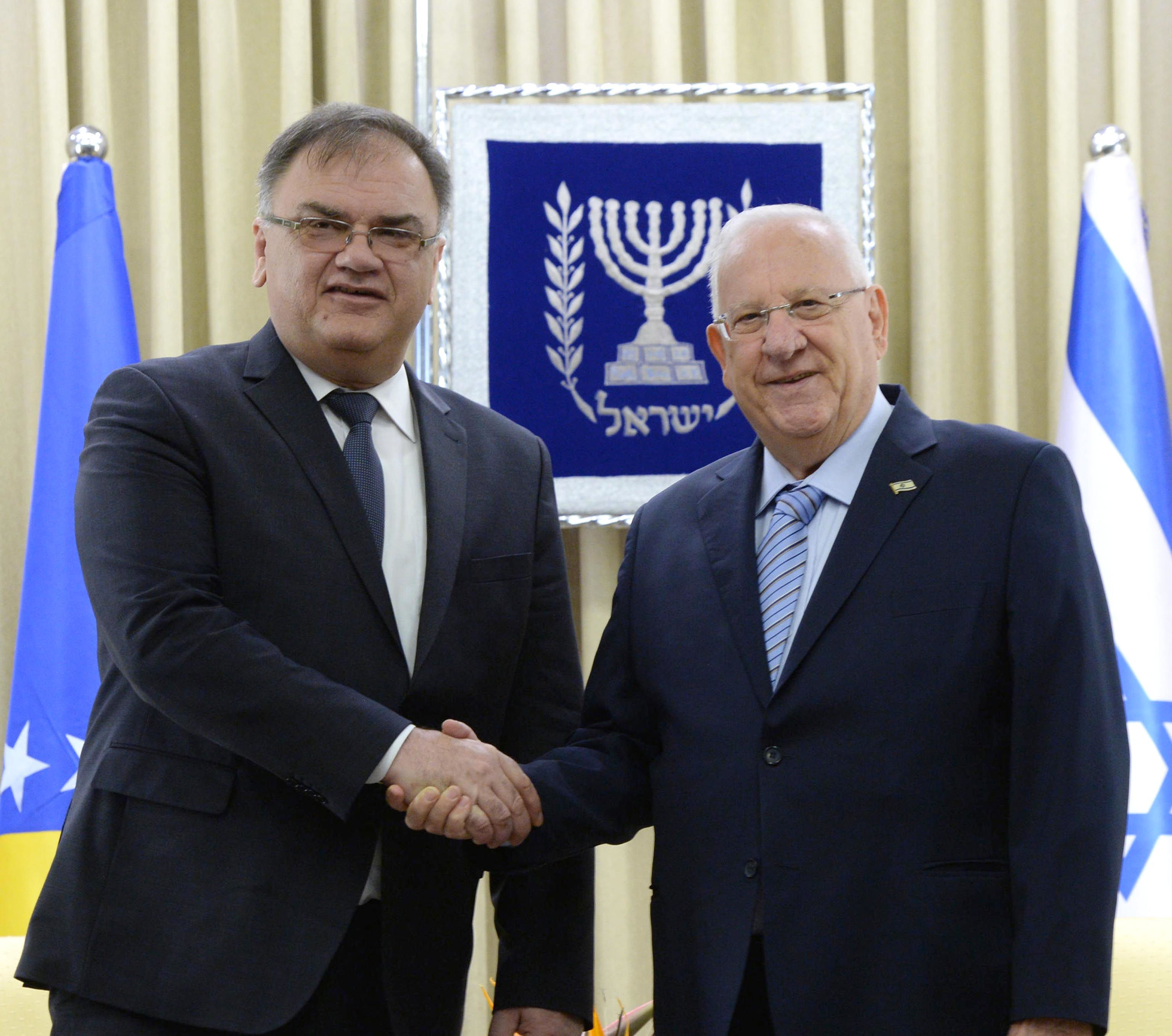 ד"ר מלאדן איבניץ', בבית הנשיא. ביקור זה הוא הביקור הרשמי הראשון של ראש הנשיאות הבוסנית בישראל הגם שהנשיא איבניץ' עצמו ביקר בעבר בישראל בתפקידו כשר חוץ. בפתח הפגישה בירך נשיא המדינה את הנשיא איבניץ' עם בואו וציין את חשיבות הביקור ליחסים בין המדינות: "זהו ביקור ראשון של נשיא מבוסניה והרצגובינה, ציון דרך חיובי ובעל חשיבות. אנו מברכים אותך בהגעתך, ומעריכים את היחסים בין המדינות".