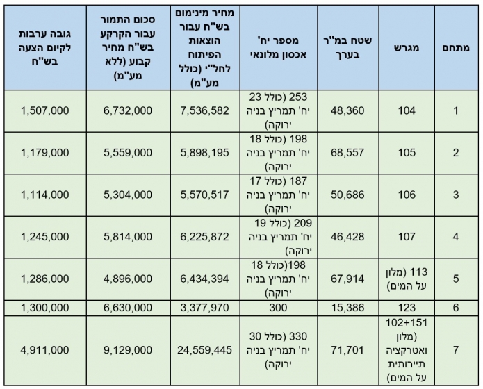 לא תתקבלנה הצעות למכרז מתחת למחיר המינימום.